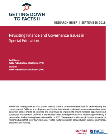 This study builds on a November 2016 research report published by the Public Policy Institute of California (PPIC) entitled Special Education Finance in California. Some of the information and data presented here were originally part of that report. The study looks at the amount, sources, and adequacy of special education funding in California. It also analyzes the effectiveness of the state’s structures and policies related to governance and accountability, including the intermediate agencies known as Special Education Local Planning Areas (SELPAs) that assist districts with their special education responsibilities.