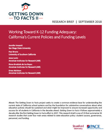 This brief puts California’s K-12 funding system into context by comparing the state’s school finance system to other states, both in terms of funding levels and policy. It also summarizes the results of an adequacy study that takes on the difficult task of estimating how much funding might be enough, using a professional judgment approach to provide some insights into the resources likely needed for adequate schooling.